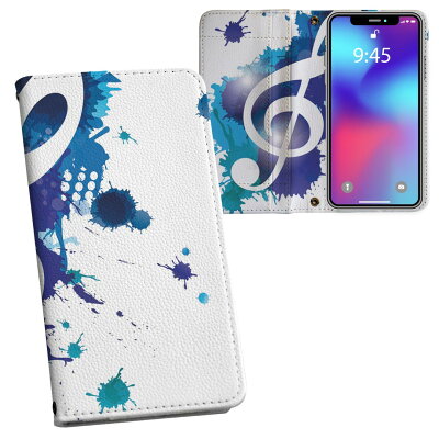 SH-02M AQUOS sense3 アクオス センススリー sh02m docomo ドコモ 両面プリント 裏表 内側 内面 スマホ カバー レザー ケース 手帳タイプ フリップ ダイアリー 二つ折り 革 フルデザイン 003301 音楽 音符 青