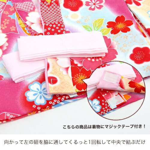【レンタル】【ひな祭り】 1歳用着物 レンタル 祝着 1歳 女の子 七五三 着物 二部式着物 被布セット「ピンク・紫・黄色・水色のぼかし地に花帯(被布:赤)」往復送料無料 初節句〔消費税込み〕