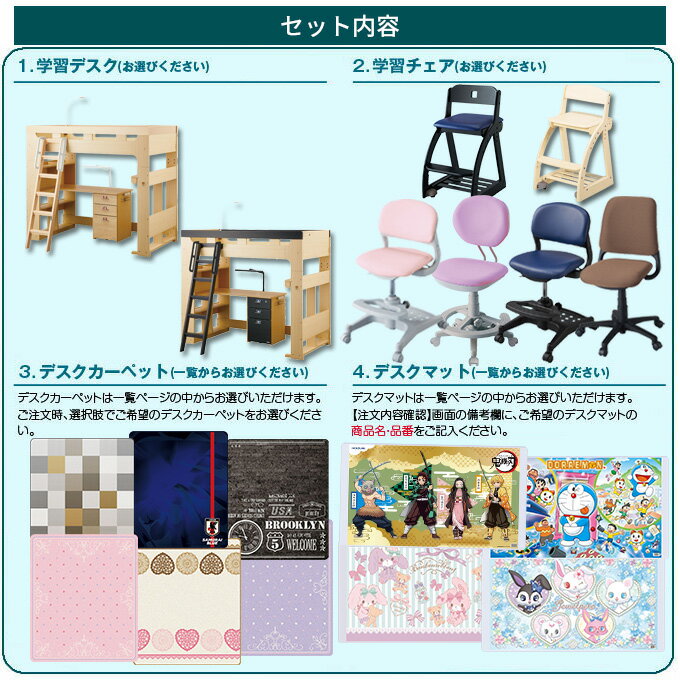 ■商品仕様 セット内容 ○ハイベッドデスク ○選べるチェア ○カーペット(備考欄へ記載下さい) カラー HCM-548 SK / SKビーチ HCM-549 SK BK / ブラック 【チェア】 木製スクエアチェア 4ステップチェア/板座 ジャストフィットチェア ハイブリッドチェア カデットチェア 詳細は画像または単品ページをご覧ください。
