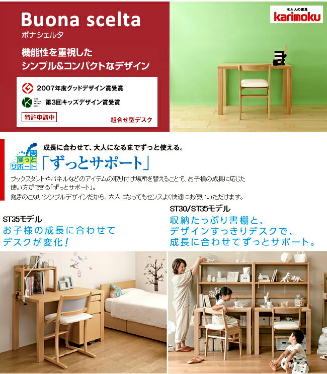カリモク 【ボナシェルタ4点セット】学習机 学習デスク 2020
