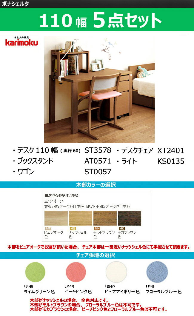 カリモク 【ボナシェルタ5点セット】学習机 学習デスク 2020